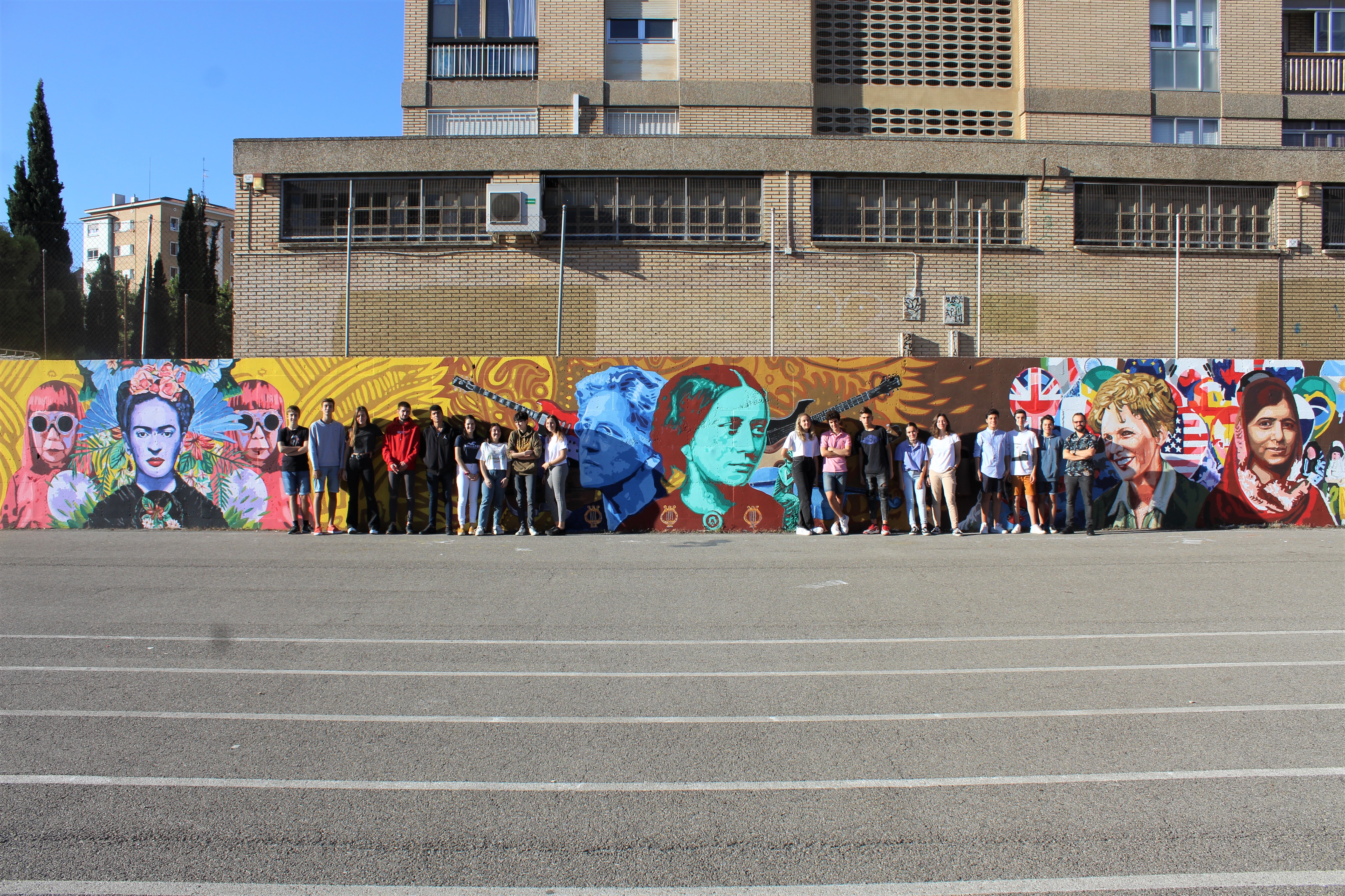 En segundo lugar, y ligado al Plan de Igualdad del centro, se trabaja la visibilización de la mujer en diversos ámbitos del saber y la cultura: cada departamento eligió un máximo de dos personajes significativos de su área, que serán los que luego se pintarán en el muro.alores de interioridad, verdad, libertad, responsabilidad, amistad, amor, xomunidad, justicia y solidaridad, profundizando en el carisma e identidad propios del centro. El alumnado votó los nombres o valores que más le gustaron y que se trasladarán posteriormente al muro: la palabra «Romareda» (que ya ha sido pintada por el alumnado), y «Libertad y Responsabilidad», que se plasmará en un futuro próximo.