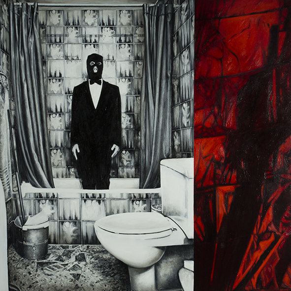 Las obras pictóricas tienen títulos como, entre otros, Caos-germen, Fugaz, Paisaje inicio, Uno-inmediato, P, Convulsión y Huída (la edad madura). Estamos ante poderosos cuadros expresionistas, a través de variados trazos gestuales, grandes planos irregulares y dispares toques espaciales para generar inquietantes atmósferas. Predominio de los tonos oscuros y excepcional énfasis de luces y sombras, mientras que en un cuadro surge una especie de brazo emergiendo de cualquier lugar ignoto.